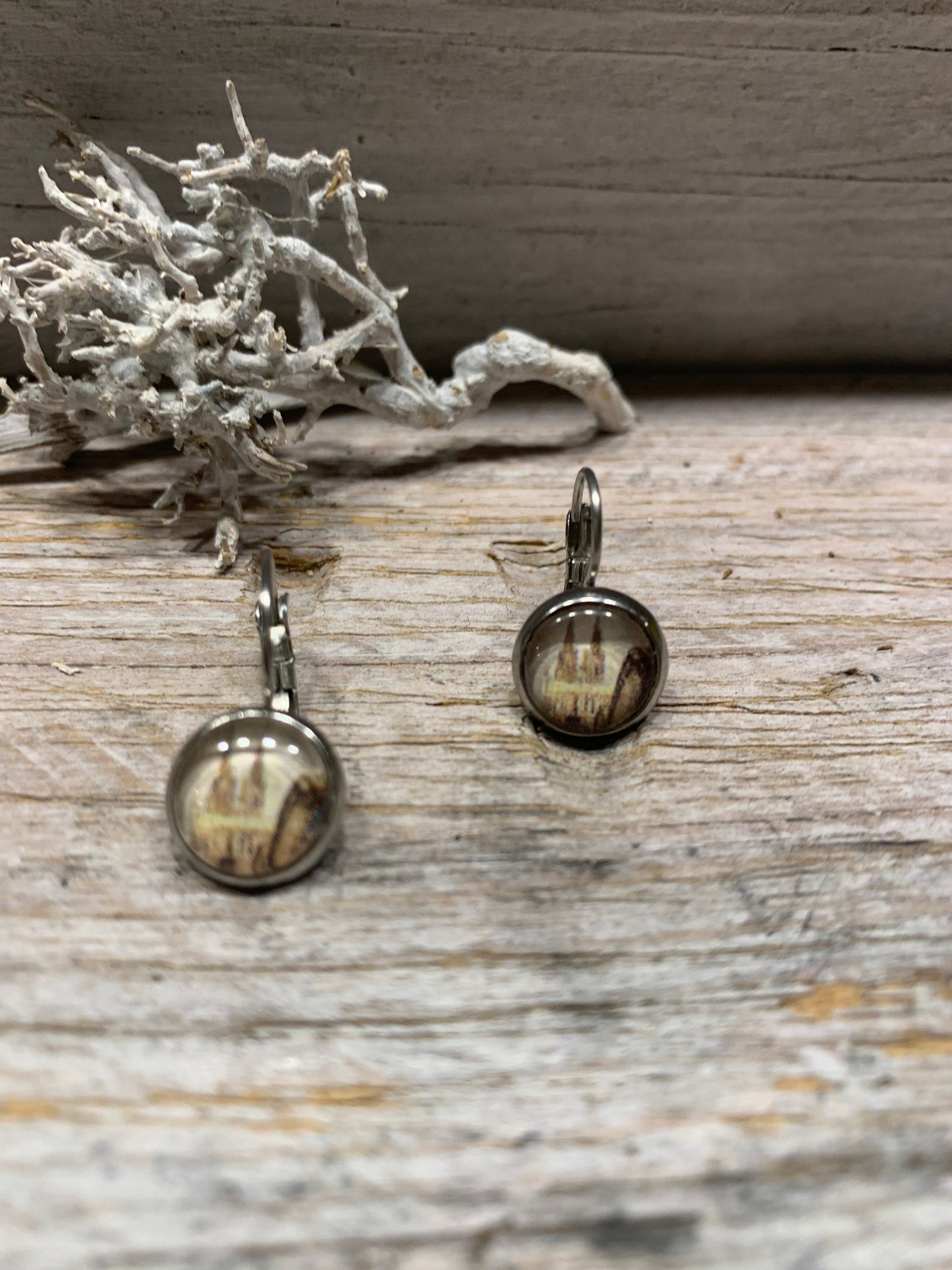 Edelstahl Ohrhänger Kölner Dom in Braun – 12 mm