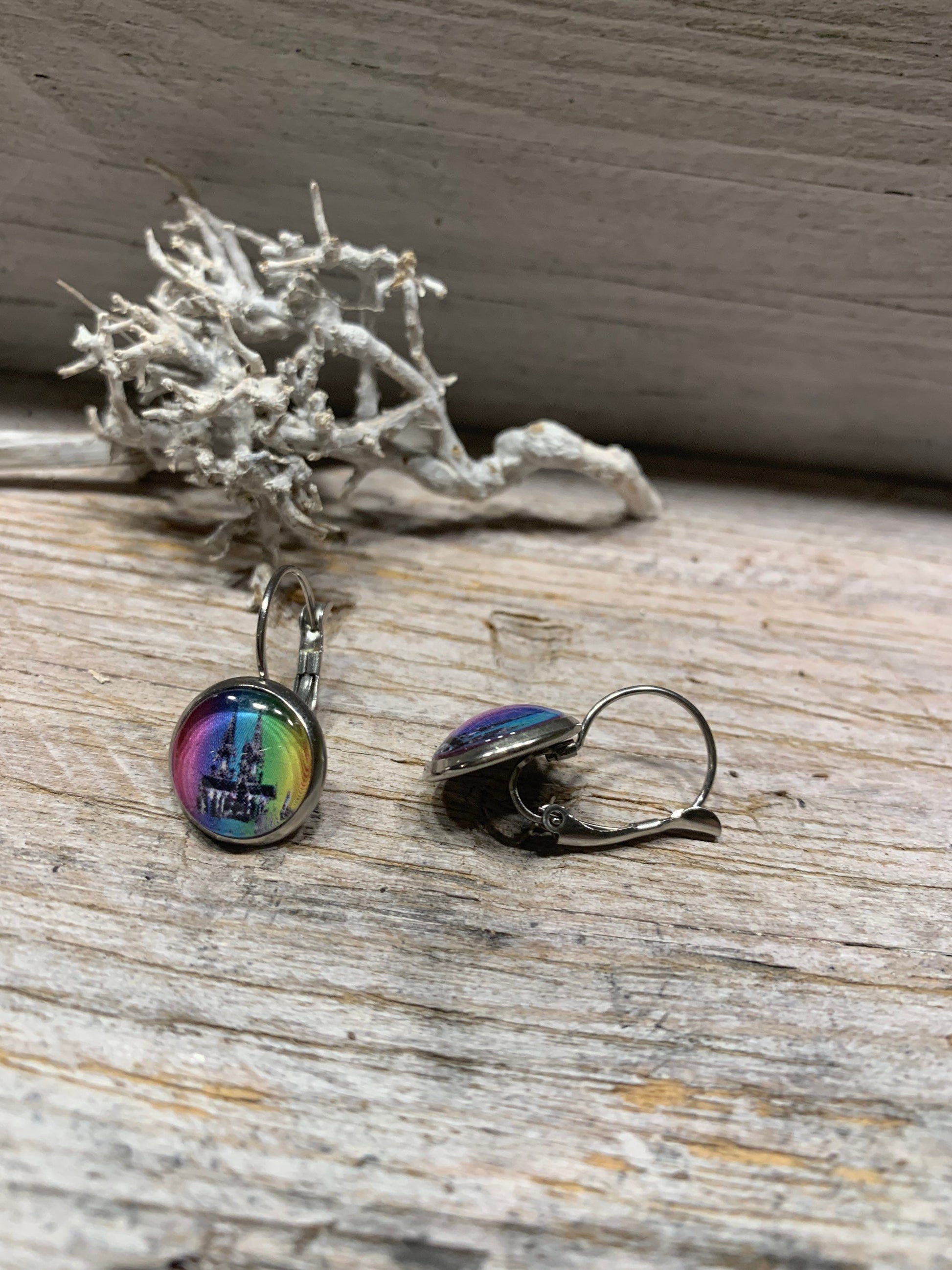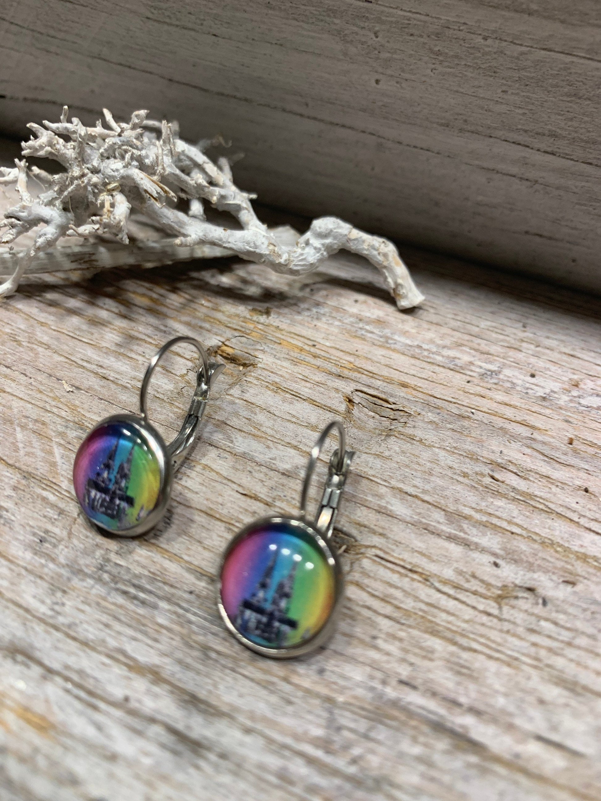 Edelstahl Ohrhänger Kölner Dom – Regenbogen – 14 mm