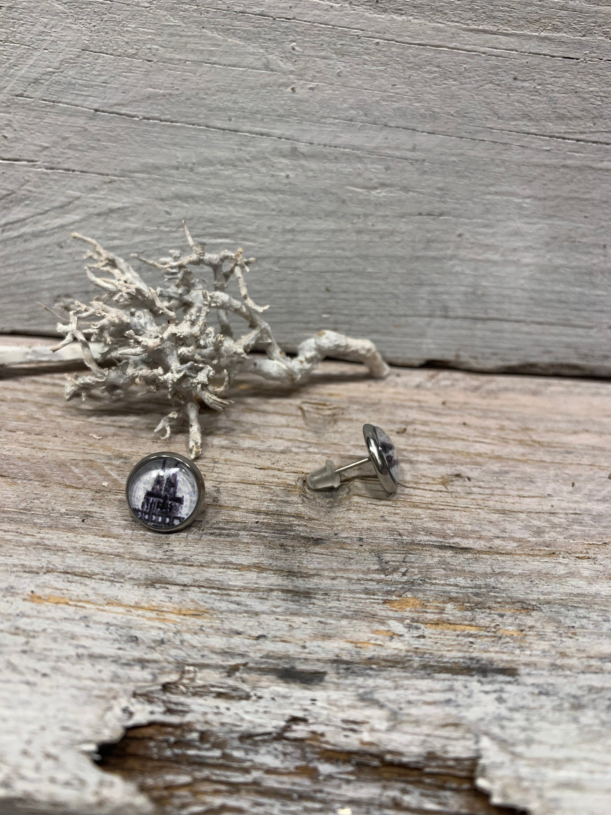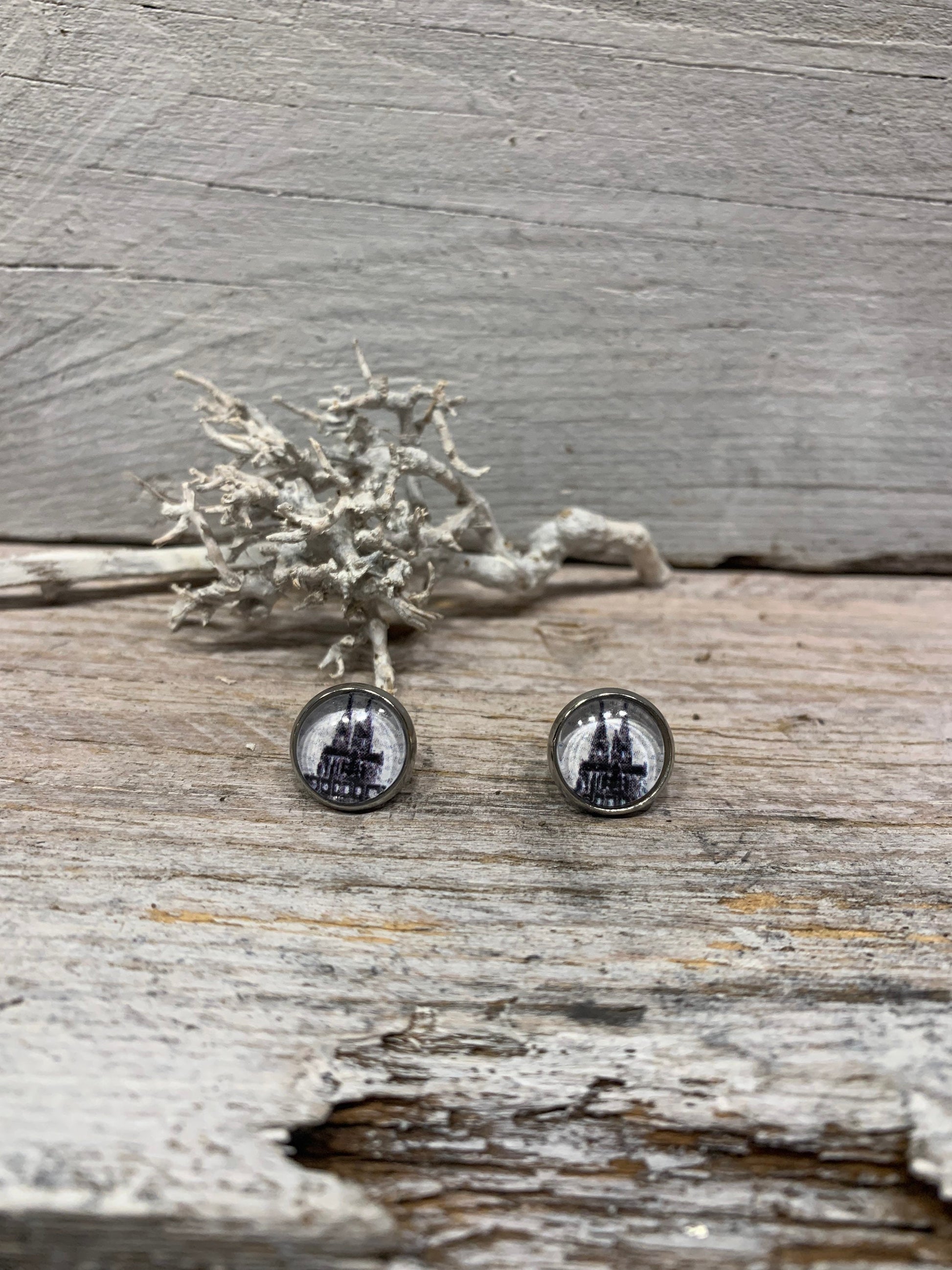 Ohrringe Kölner Dom – Handgemachte Ohrstecker aus Edelstahl in Schwarz-Weiß