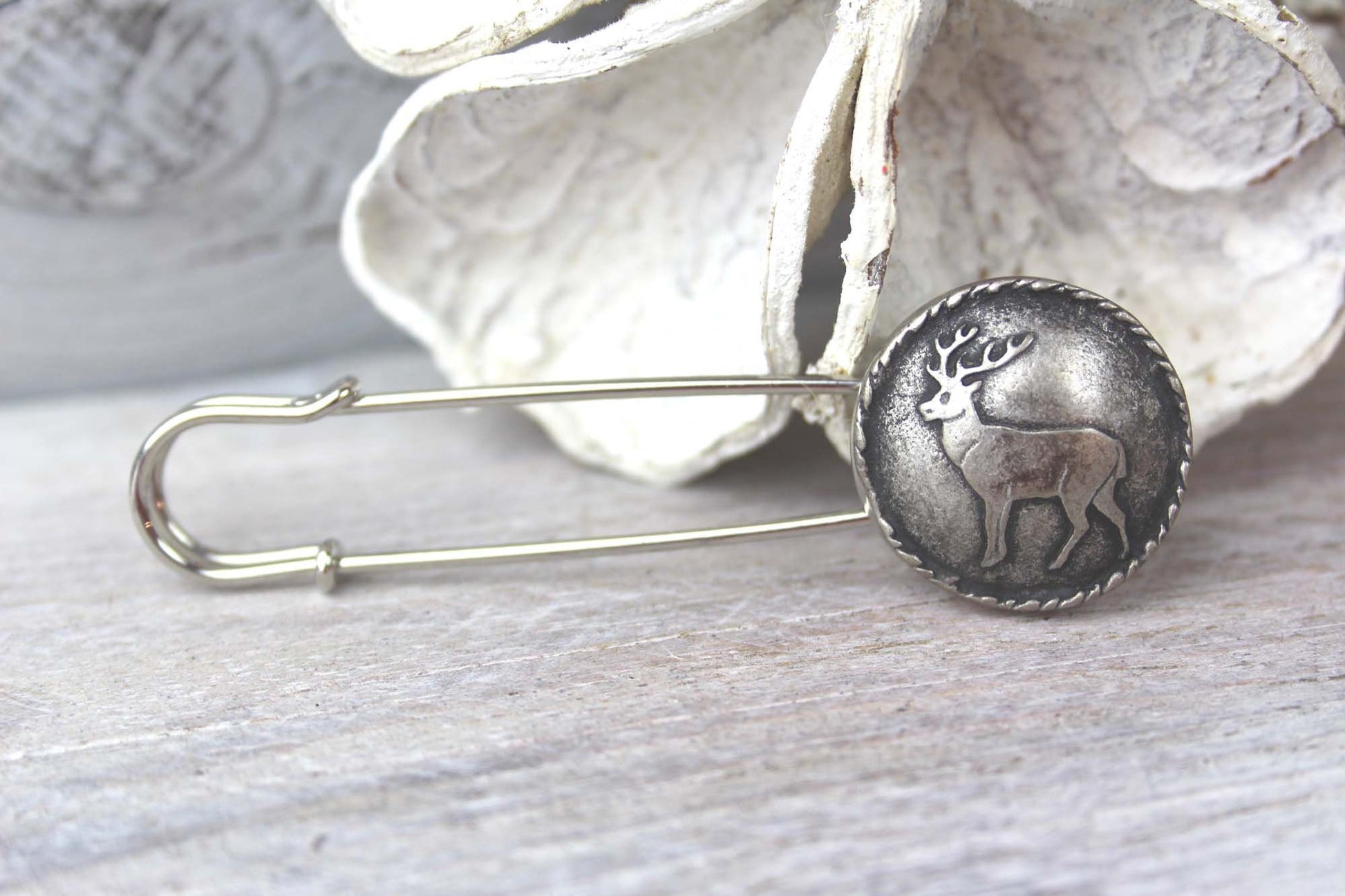 Ponchonadel aus Metall mit Hirsch Motiv – Elegante Kilt Pin für Trachten